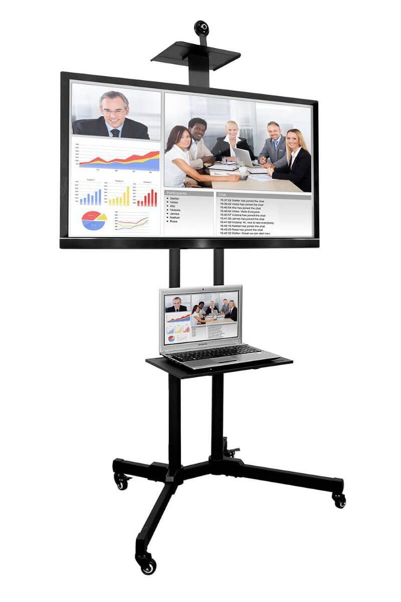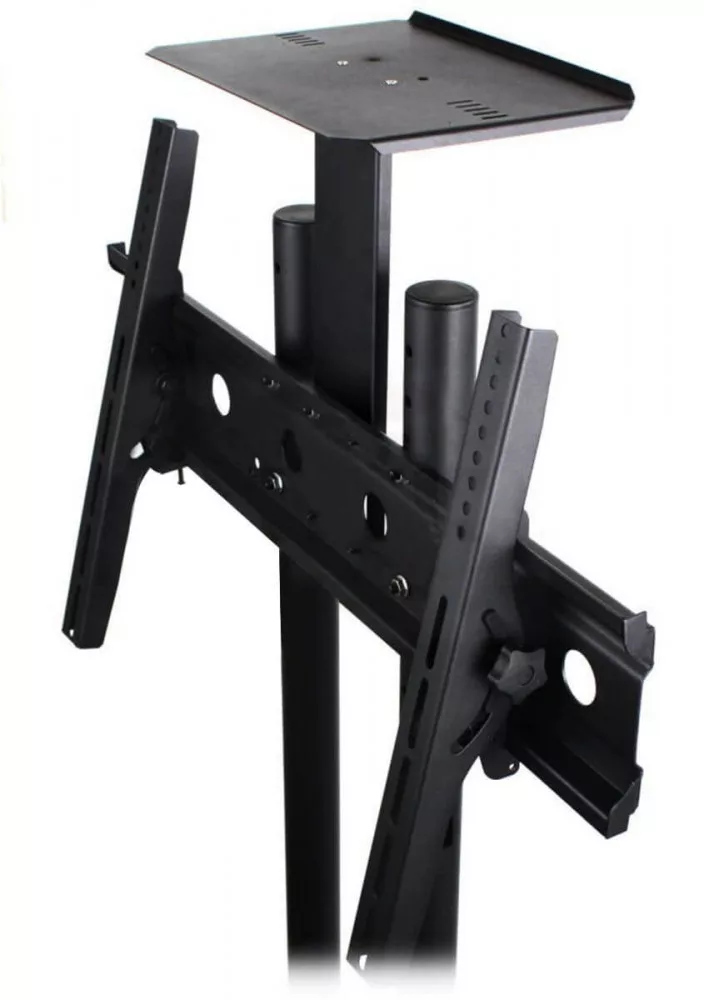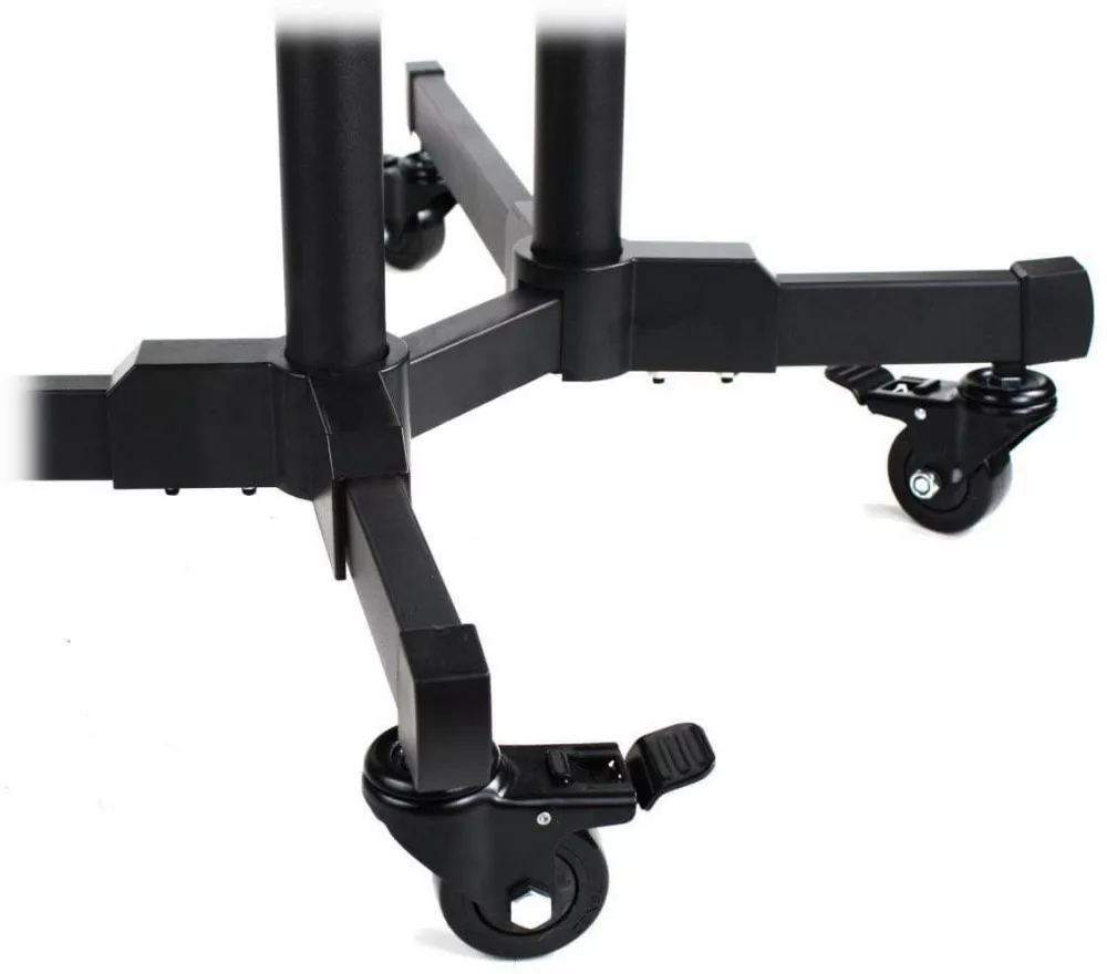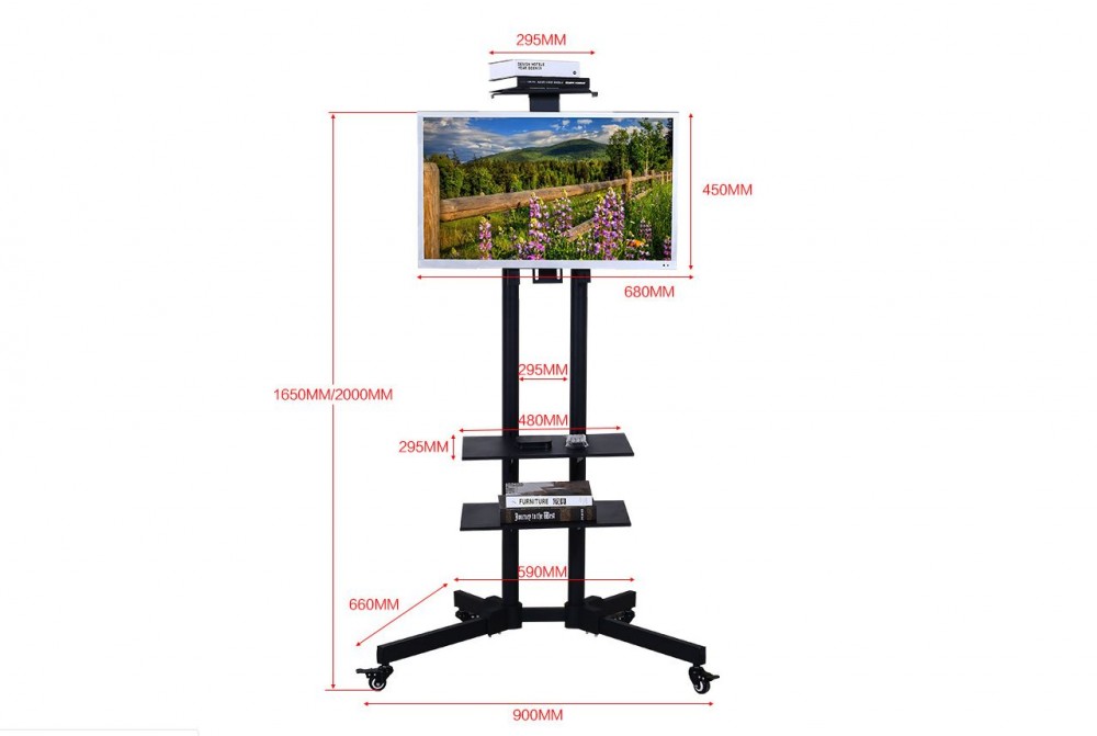 Vďaka kolieskam sa dajú ľahko premiestňovať. Stojan obsahuje 1 podložku na notebook, 1 konzolu na TV a 1 podložku na projektor alebo kameru. Výšku podložiek a konzoly možno nastaviť pomocou otvorov na ráme.