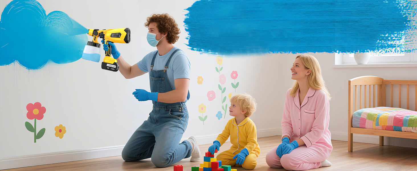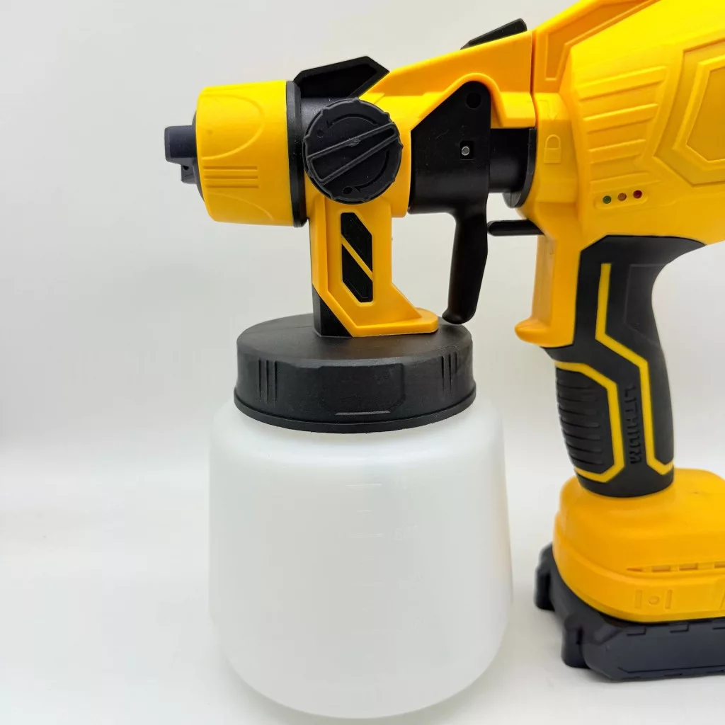 A HVLP festékszóró rendkívül könnyű, így akár egy kézzel is kényelmesen használható. Idősebbek vagy hölgyek számára is könnyen kezelhető. Kompakt méretének köszönhetően egyszerűen szállítható, kültéren vagy áramforrástól távoli helyeken is használható. A vezeték nélküli működés megszünteti a kábelek okozta korlátozásokat, így szabadon mozoghat munka közben.