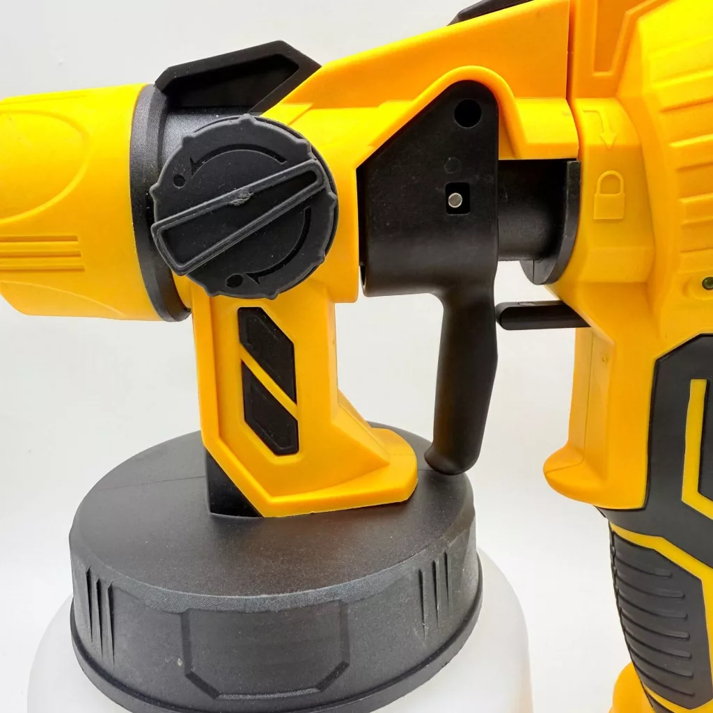 Az állítható áramlásszabályzó gomb segítségével pontosan beállítható a kijuttatott festék mennyisége az adott munkához. Gyorsabb és kényelmesebb megoldás, mint a hagyományos ecset vagy henger, miközben csökkenti a festékpazarlást és egyenletes, professzionális felületet biztosít.