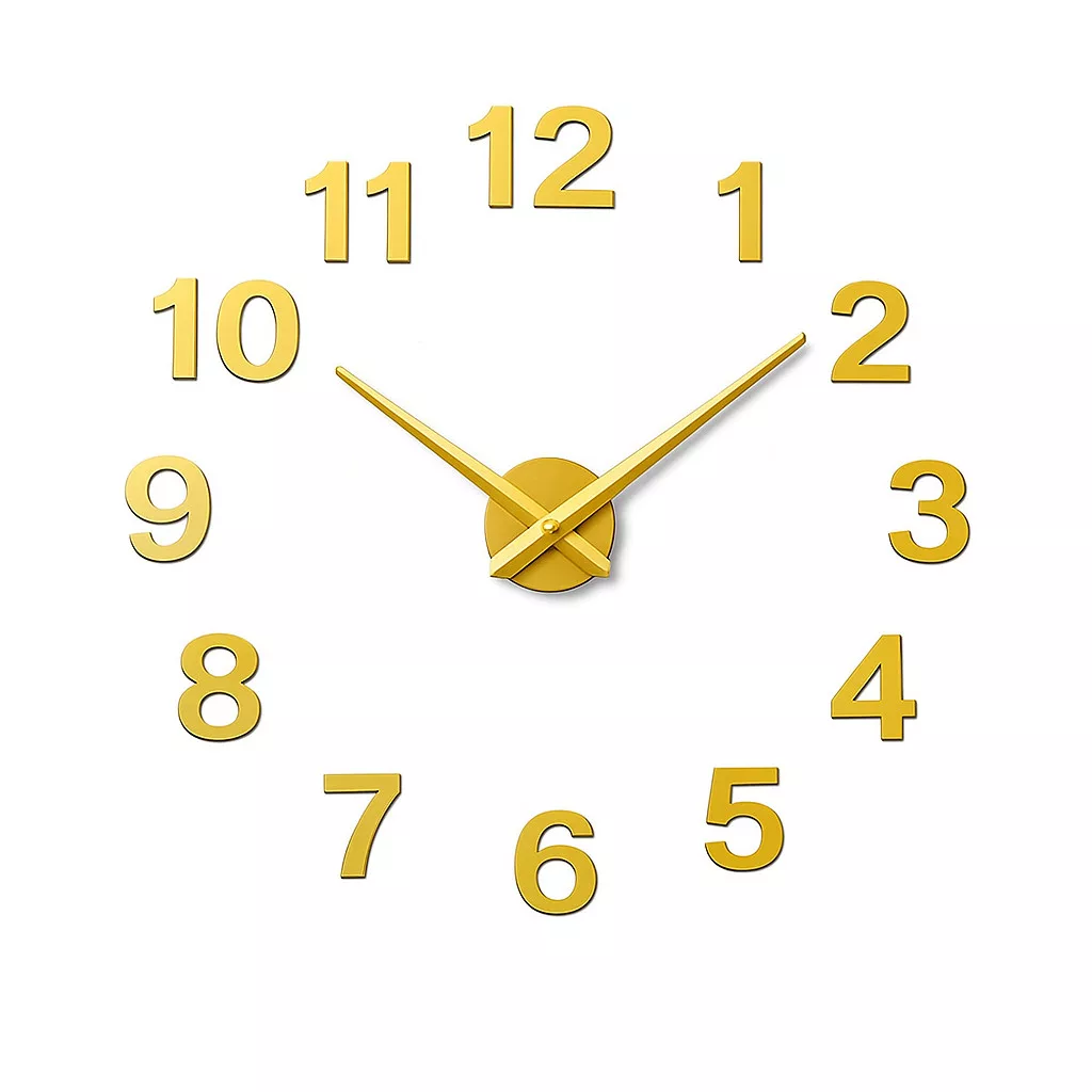 Nagyméretű DIY Modern Halk Falióra – 3D Öntapadós Arab Számos, Arany Színben (90 cm – 1,8 m, szabadon állítható méret)