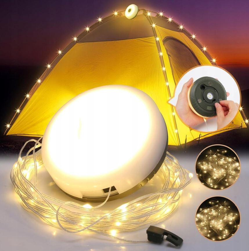 Az akkumulátoros LED-es kempinglámpa 10 méteres hosszban ideális választás minden kempingező, túrázó és természetkedvelő számára. A meleg fényű LED-ek kellemes hangulatot teremtenek, miközben elegendő fényt biztosítanak akár egy egész sátor, kert vagy terasz megvilágításához.