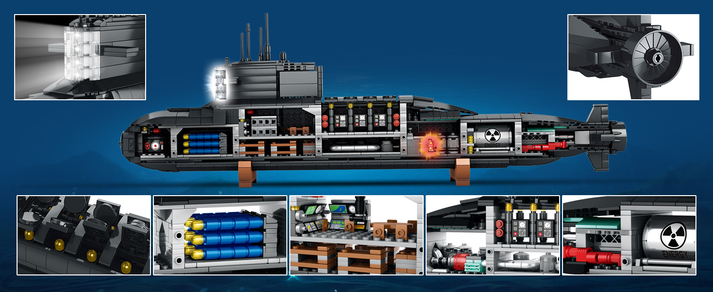 Reobrix Katonai Nukleáris Tengeralattjáró Építőkészlet(1498 Darab, LED világítással)