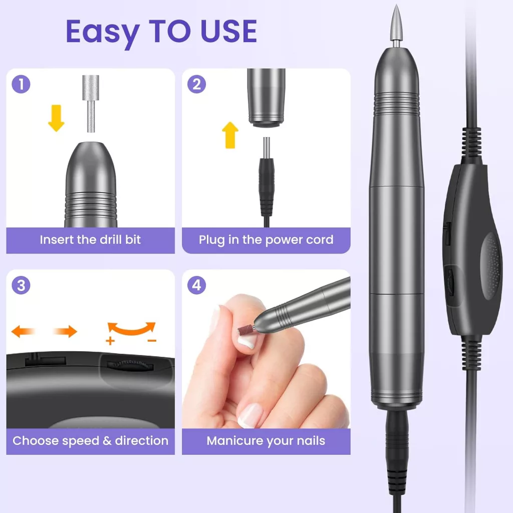 Ez a professzionális elektromos körömcsiszoló a tökéletes választás, ha precíz, gyors és biztonságos körömápolásra vágysz, akár otthon, akár útközben.
