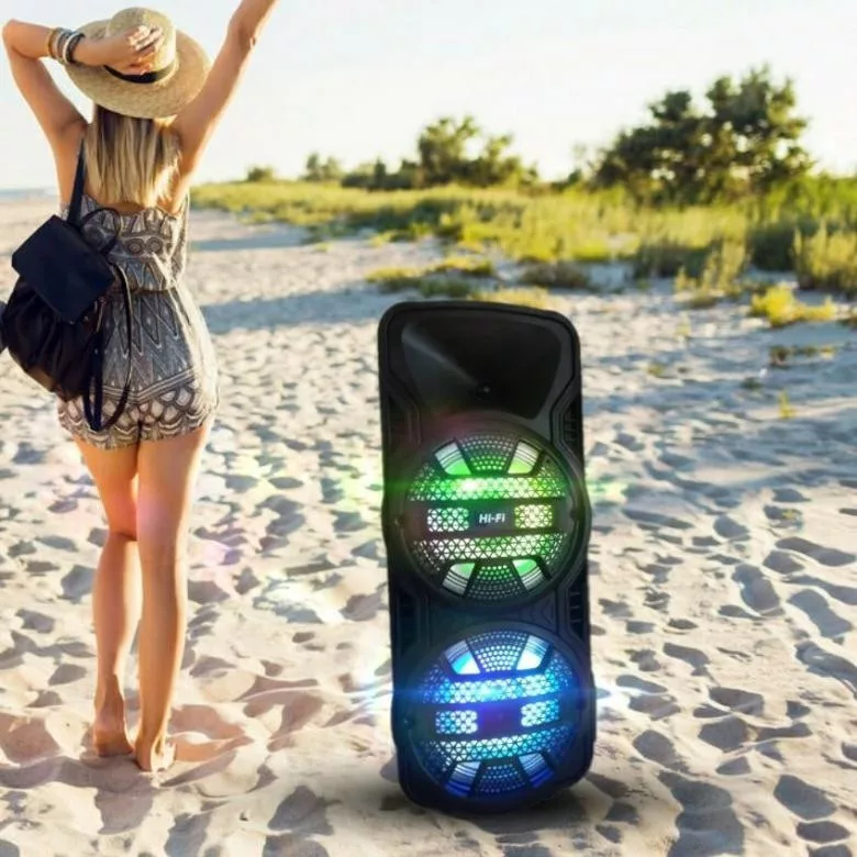 Stĺpec sa pripája k ľubovoľnému zariadeniu cez Bluetooth a je vybavený AUX káblom a FM rádiovým prijímačom. ZQS-8205 bude skvelou voľbou pre milovníkov karaoke - obsahuje bezdrôtový mikrofón a ľahká hudba bude príjemným doplnkom a vytvorí atmosféru! Stĺpec bol navrhnutý na prevádzku batérie bez dobíjania na niekoľko hodín, čo umožňuje dlhodobé počúvanie obľúbených skladieb vo vynikajúcej kvalite za akýchkoľvek podmienok.