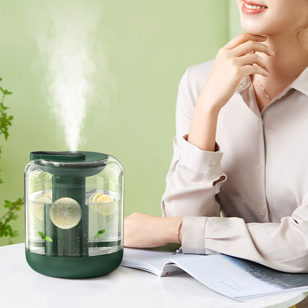 V 1 litrovom 2000mAh zvlhčovači zelenej farby.