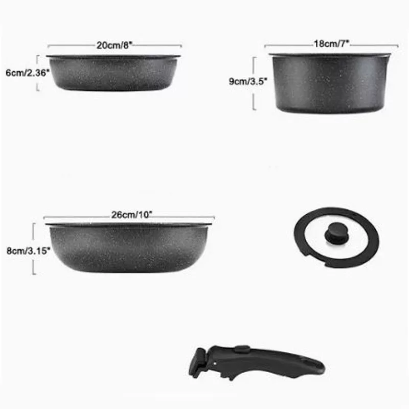 Odnímateľná rukoväť 5-dielna sada riadu - Moderné, priestorovo úsporné a praktické riešenie do každej kuchyne.