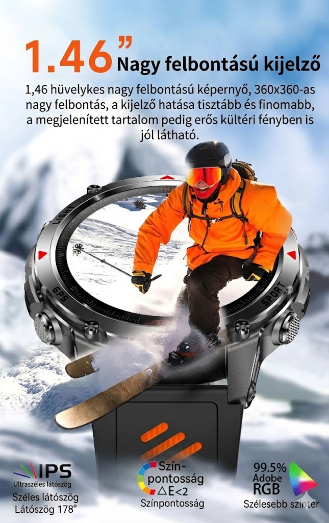• 1,46" AMOLED kijelző