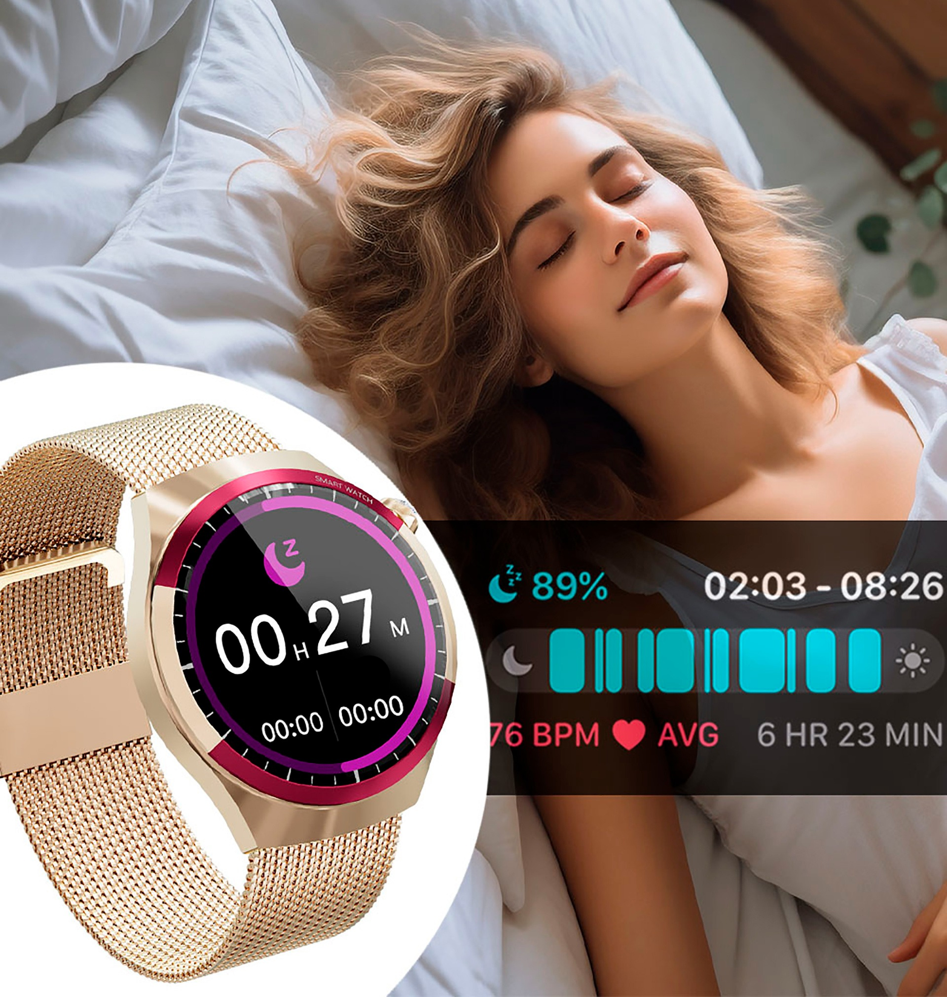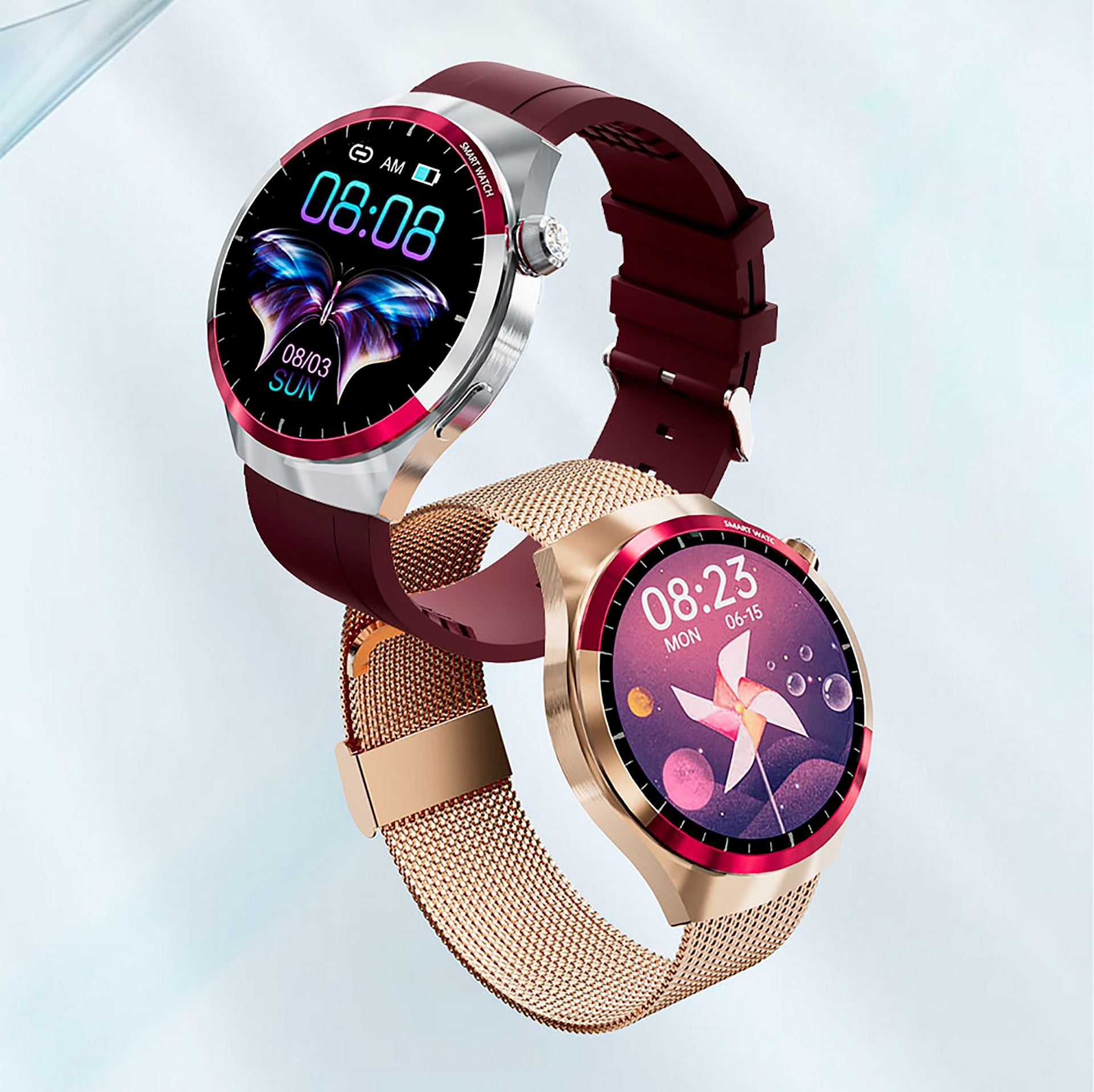 Stílusos megjelenés és modern technológia egyetlen eszközben. Ez az elegáns női okosóra nemcsak divatos kiegészítő, hanem intelligens segítőtárs a mindennapokban, amely figyeli az egészségedet, támogatja az aktív életmódot és mindig kapcsolatban tart a telefonoddal.