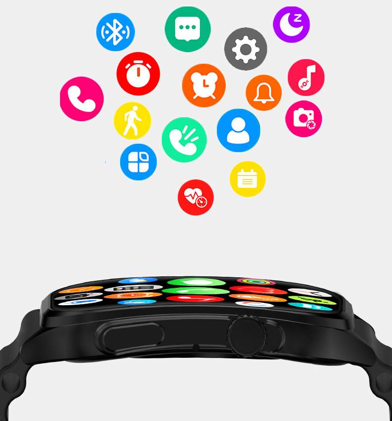 Az okosórán számos hasznos alkalmazás érhető el, többek között Bluetooth hívás, éjjeli lámpa funkció, ülésre figyelmeztetés, hangasszisztens, zenevezérlés, egészségfigyelés, több sportmód, távoli kamera vezérlés, stopper, lépésszámláló és alvásmonitorozás. Az alkalmazáson keresztül további számlapok tölthetők le, így mindig a hangulatodhoz és stílusodhoz igazíthatod az órát, miközben új funkciókat fedezhetsz fel.